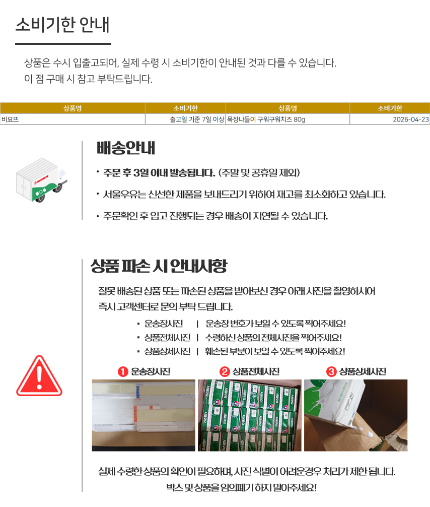 본 제품은 입고일별 소비기한이 상이하므로 필요 시 별도 문의 바랍니다. |